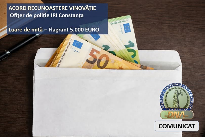Ofițer de poliție din Constanța, trimis în judecată de DNA după ce a cerut mită pentru a nu aplica sancțiuni