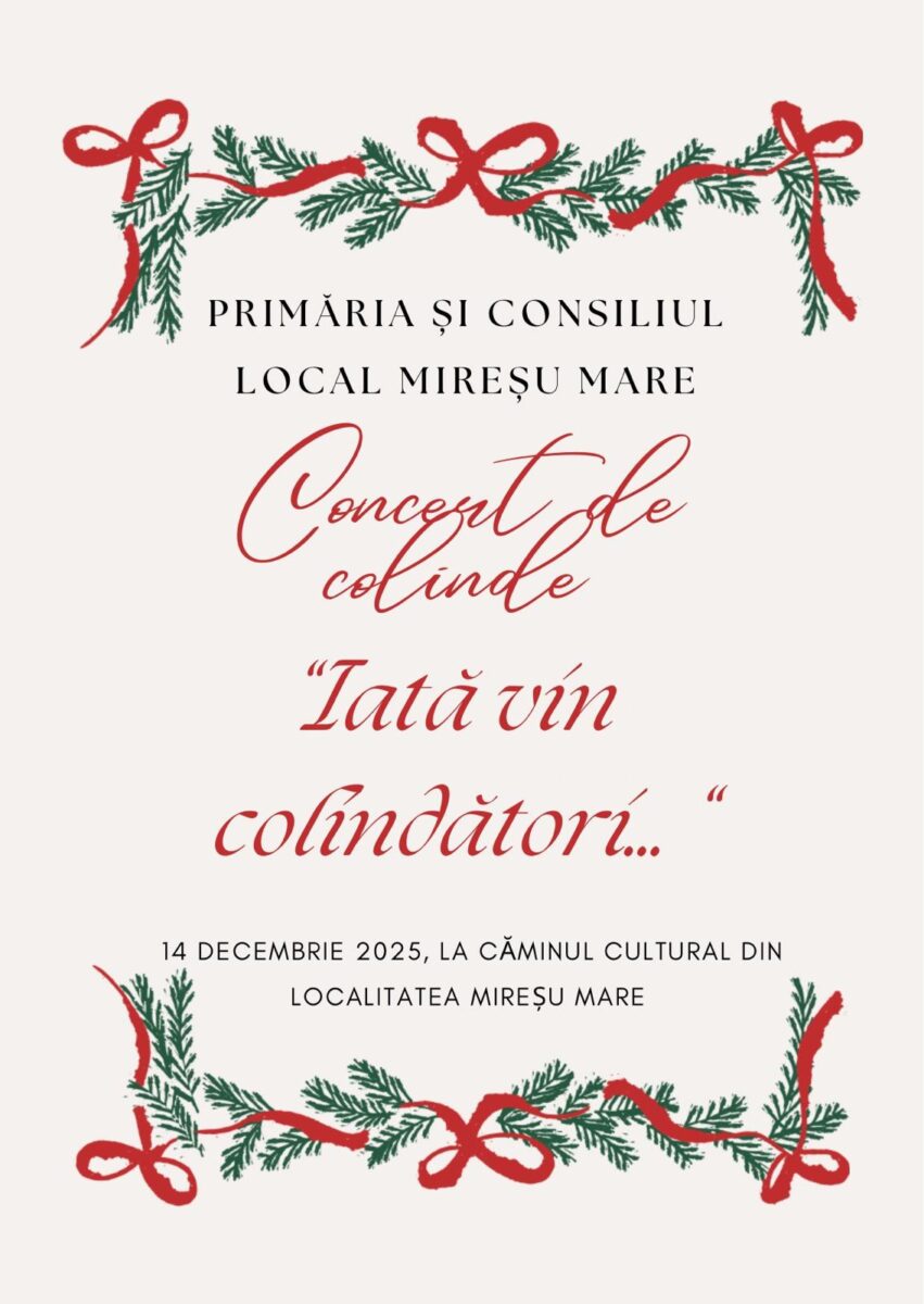 Evenimente Primăria Mireșu Mare invită la concertul de colinde „Iată vin colindători…”, la Căminul Cultural Citește mai multe Detectivul de Presă ȘOC! 3 zile acum