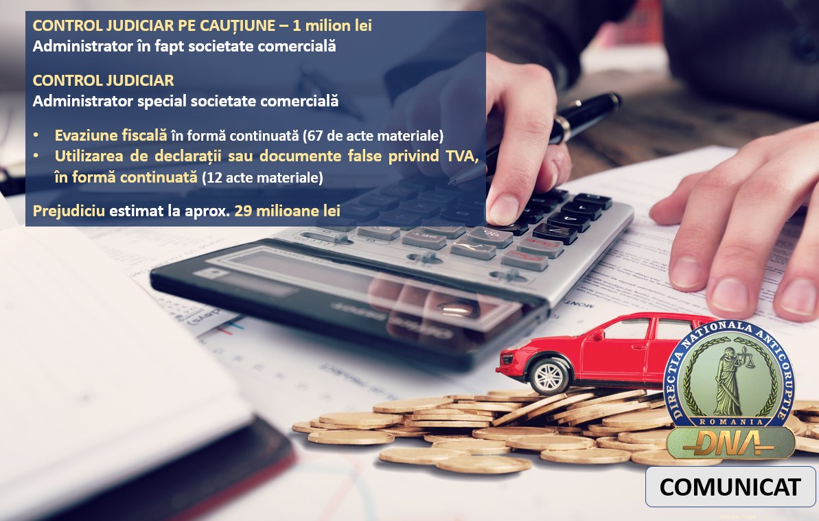 DNA pune sub control judiciar doi administratori ai unei firme de comerț auto, acuzați de evaziune fiscală de peste 28 milioane lei