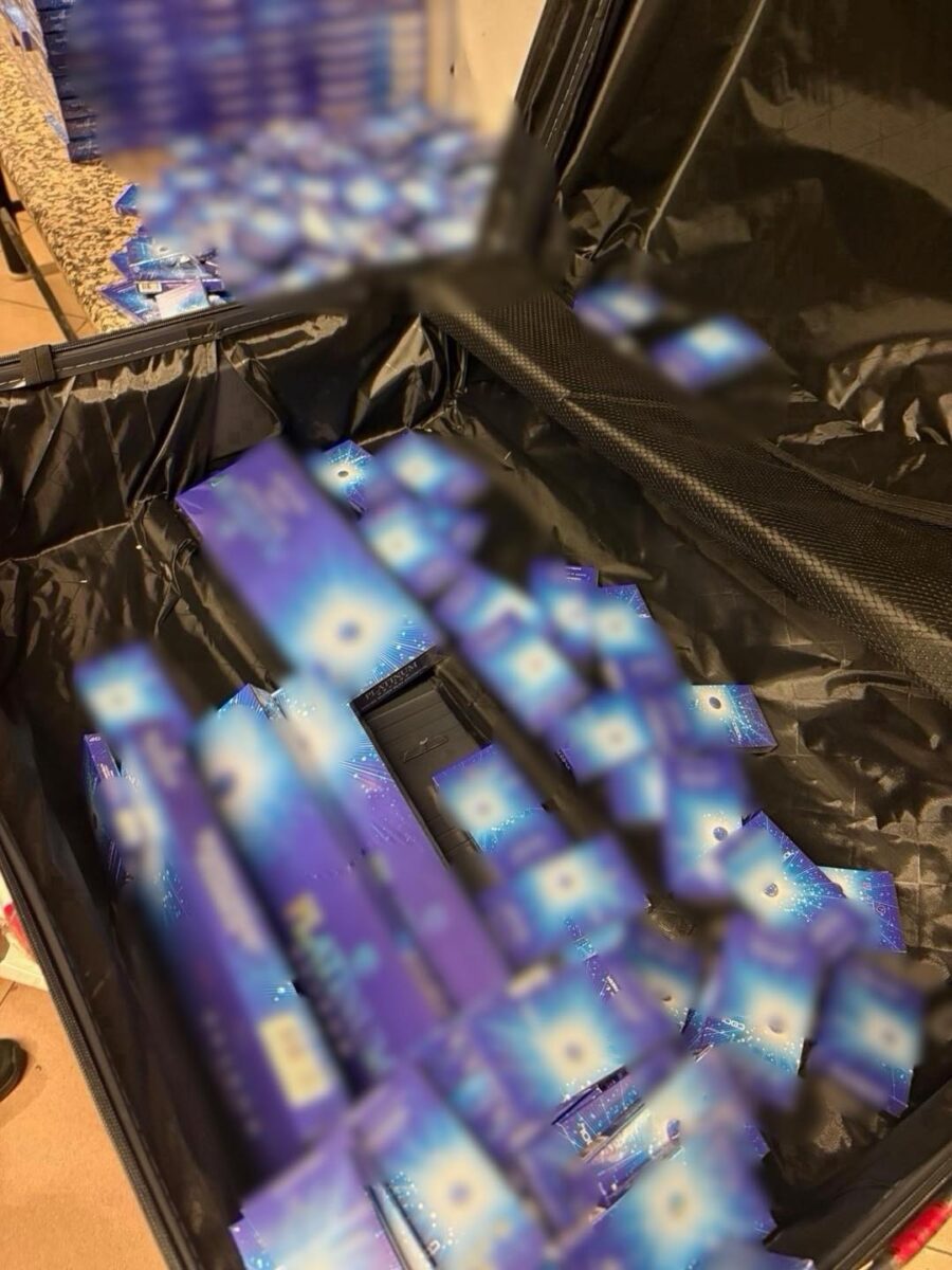 În urma controlului vamal efectuat asupra a trei pasageri, au fost identificate 175.200 de țigarete netimbrate, ascunse în bagajele de cală. Întreaga cantitate a fost reținută în vederea confiscării, urmând ca organele de cercetare competente să fie sesizate, conform procedurilor legale.
